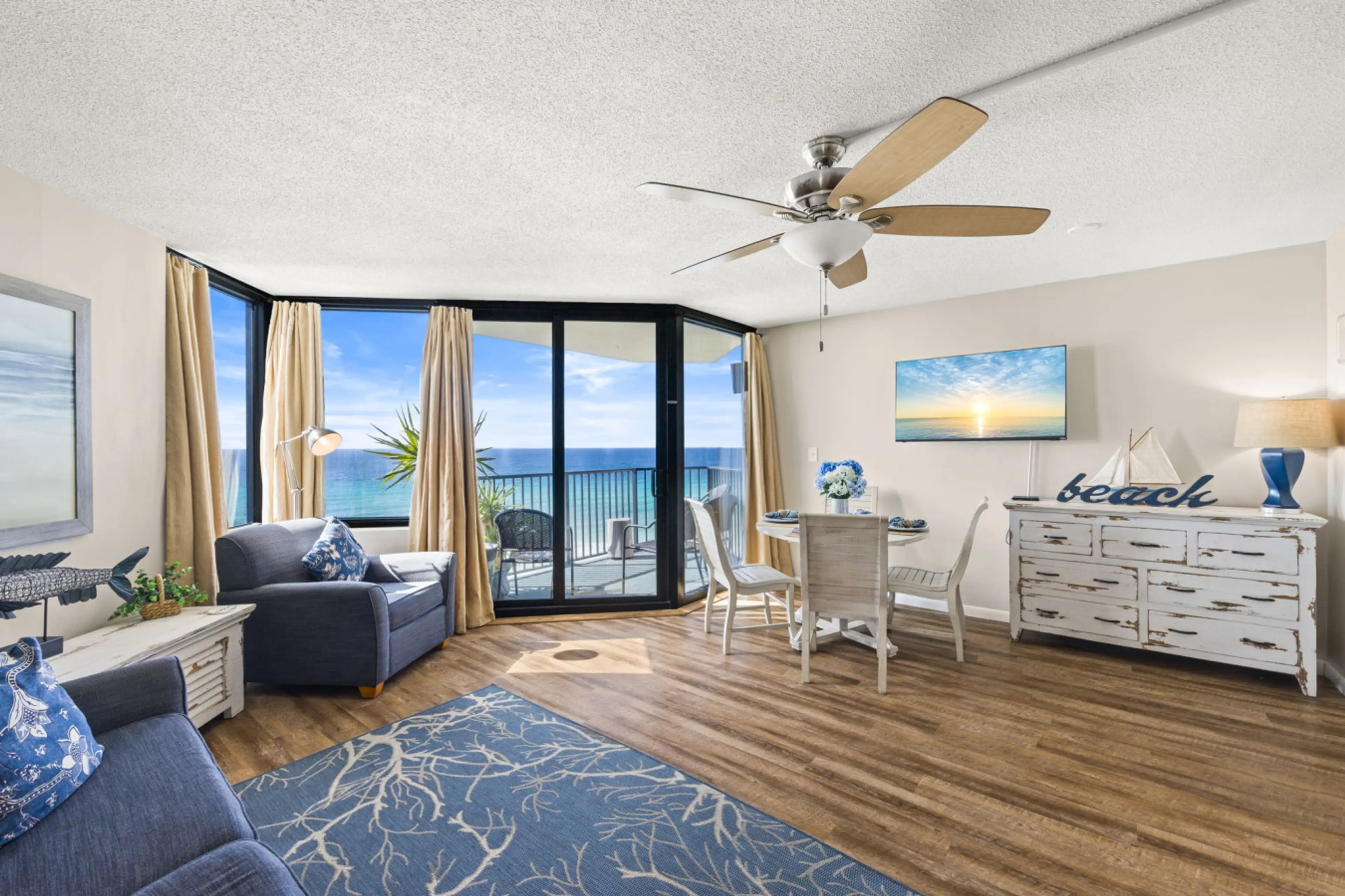 Wake up to stunning Gulf views at this beachfront Panama City Beach condo featuring a private balcony, direct beach access, resort pools, and a bright open living space. Perfect for couples or small families, this coastal retreat offers a queen bedroom, fully equipped kitchen, and everything you nee...